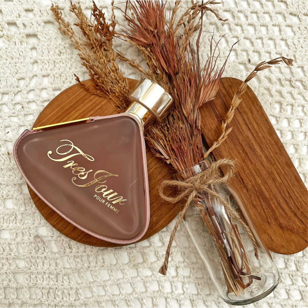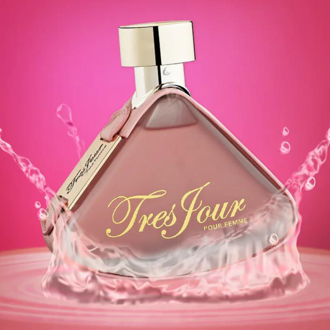Armaf Tres Jour EDP has a floral scent with hints of green tea, lemon, and neroli, followed by white flowers and jasmine, and finishes with a woody, musky base.