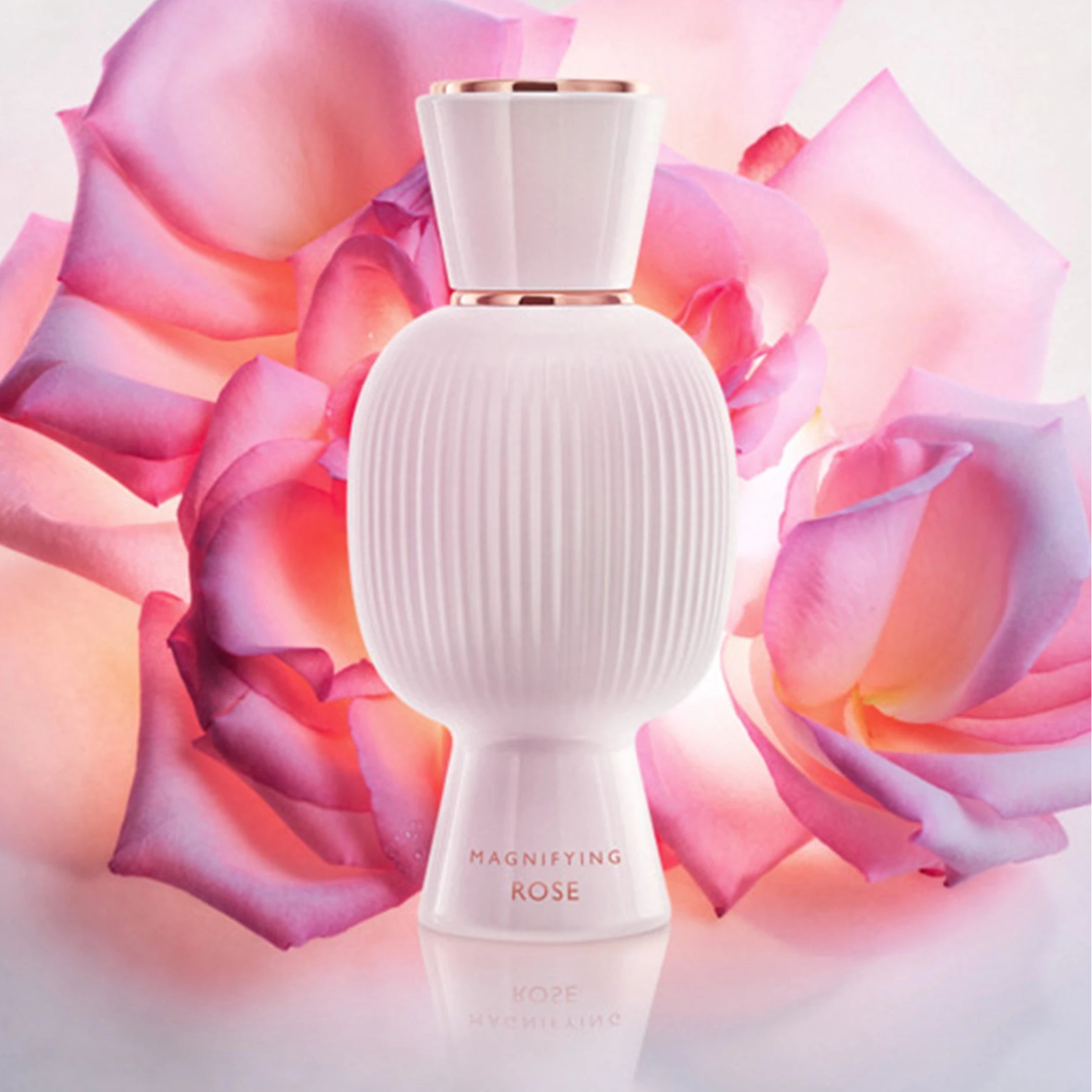 Bvlgari Allegra Magnifying Rose EDP smells like a luxurious blend of rich roses with warm notes of ambergris, myrrh, vanilla, and musk, creating a captivating and elegant fragrance perfect for any occasion.
