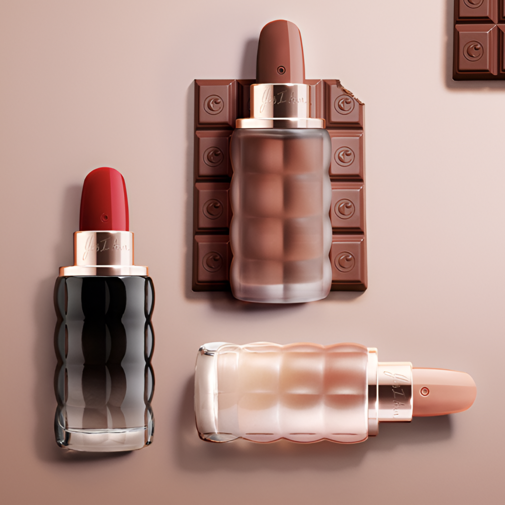 - Lipstick-shaped bottle embodies boldness.