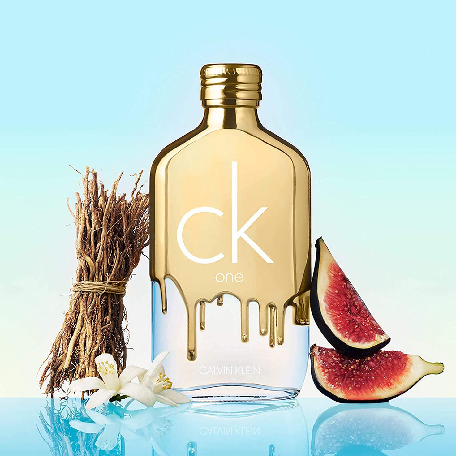 Calvin Klein CK One Gold EDT smells like a mix of sweet Fig, zesty Bergamot, and earthy Vetiver.