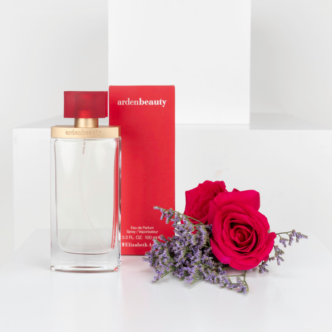 Elizabeth Arden Arden Beauty EDP smells of iris and bergamot, with hints of lotus, ginger, and orchid, capturing a chic and sophisticated mood.
