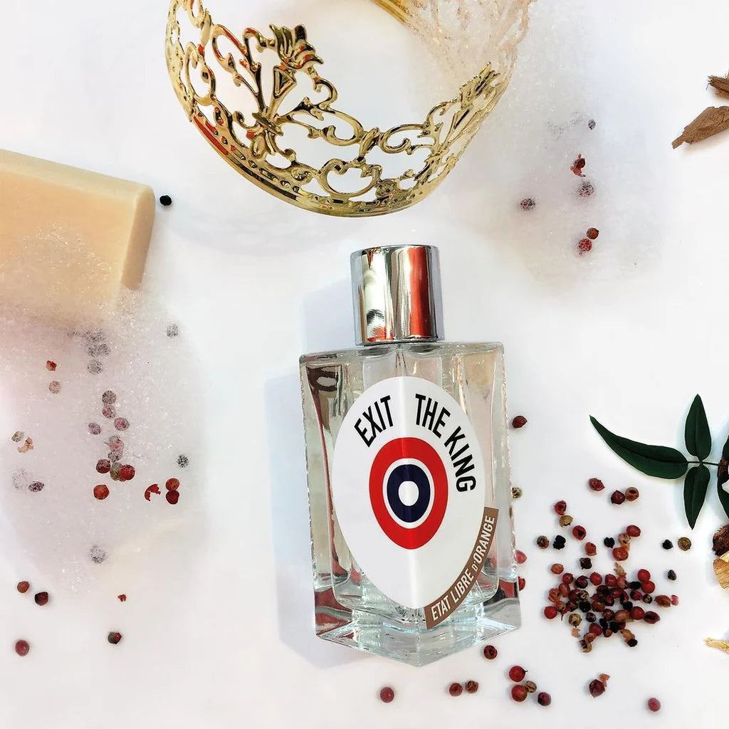 Etat Libre D'Orange Exit The King EDP smells like a daring blend of floral petals, earthy foam, and rich tree moss, perfect for those who defy norms and embrace change.