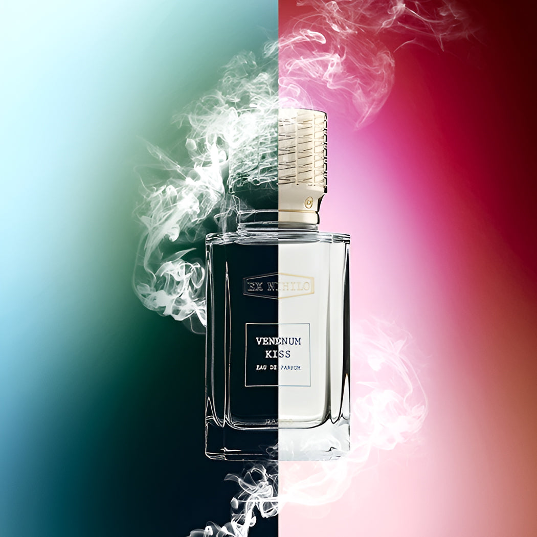 Ex Nihilo Venenum Kiss EDP has a rich amber spicy scent with notes of saffron, rose, and vanilla, exuding elegance and luxury.