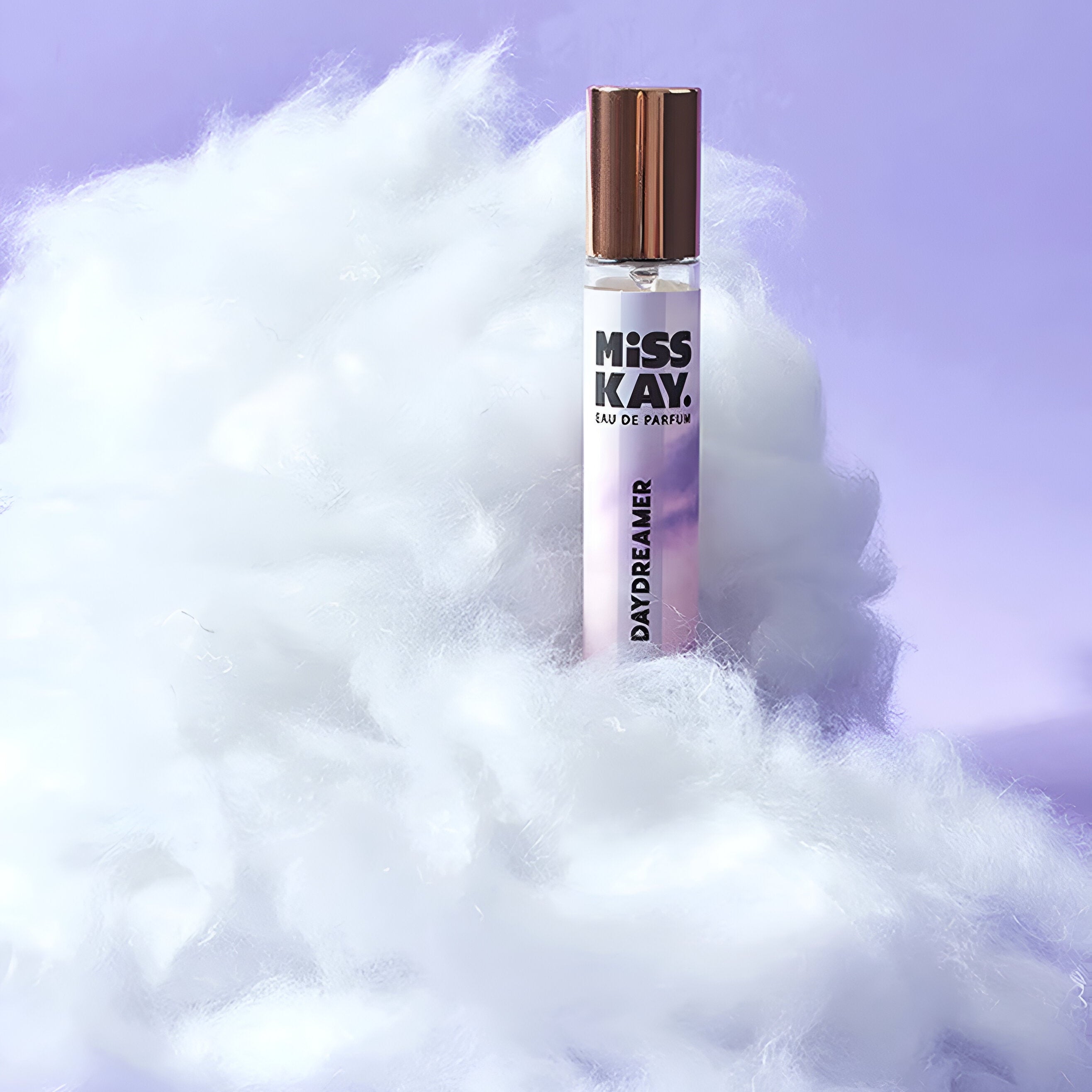 Miss Kay Daydreamer EDP smells warm and enchanting, featuring a delightful mix of sweet almonds, delicate flowers like rose and heliotrope, and a lingering touch of musk, all wrapped in crisp woody notes.