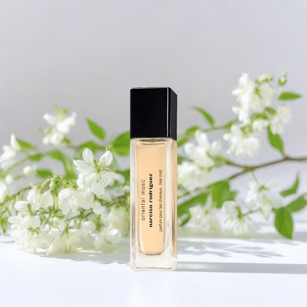 Narciso Rodriguez Oriental Musc Scented Hair Mist smells like a captivating blend of musk, Moroccan rose, rich spices, and deep woody notes, evoking an exotic and elegant allure.