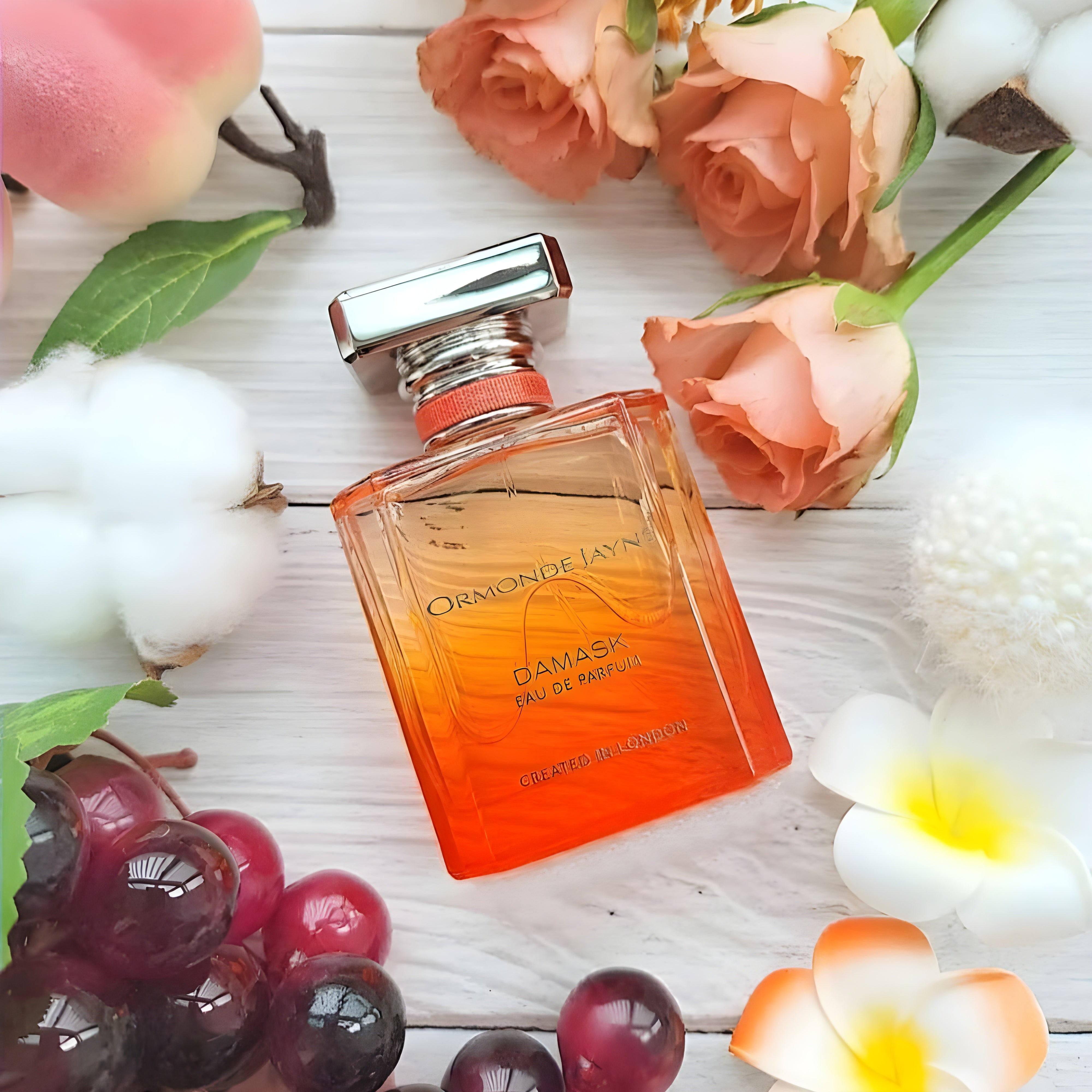 Ormonde Jayne Damask EDP smells like a blend of rose, blackcurrant, pear, and lemon, with a luxurious floral gourmand scent.