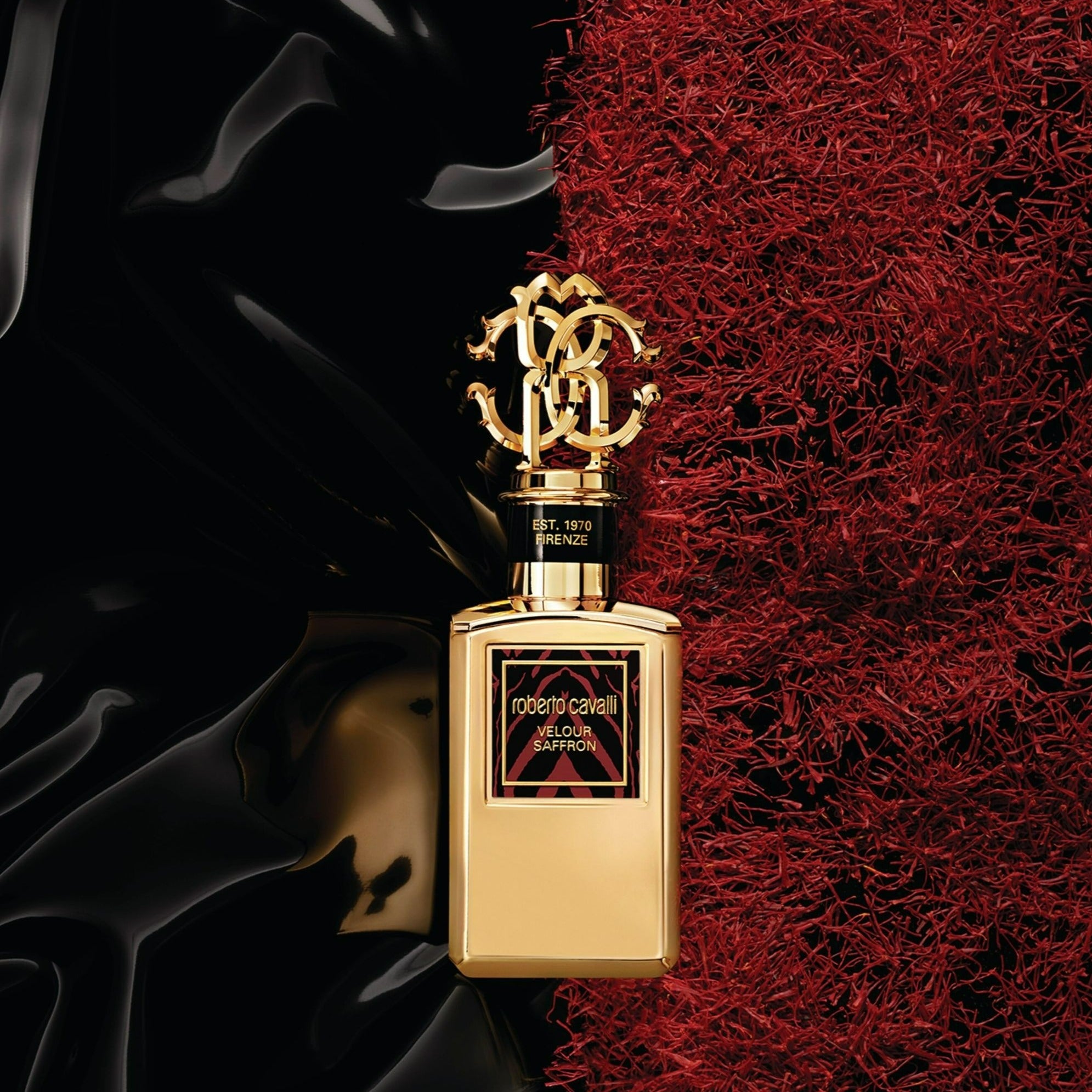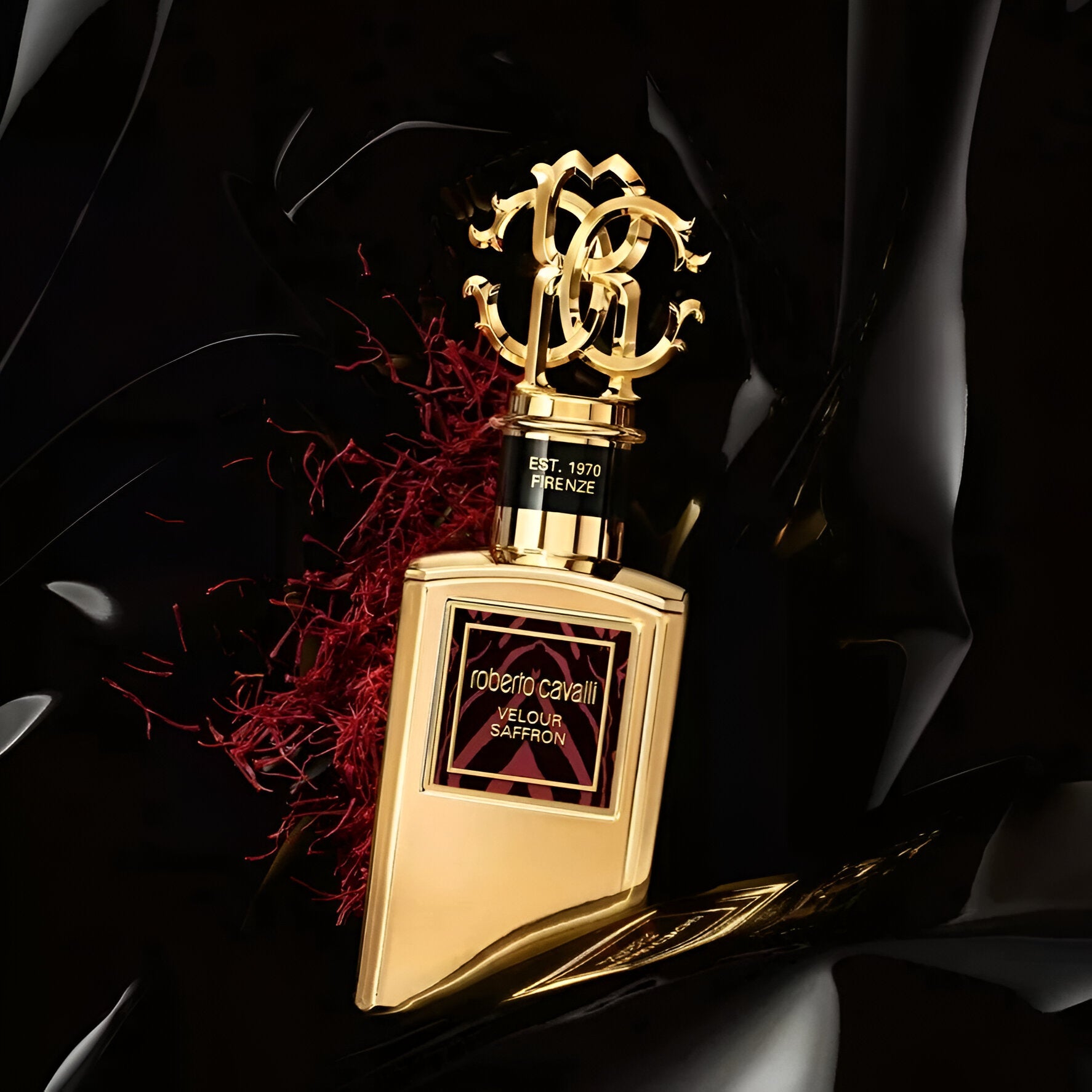 Experience the luxurious allure of Roberto Cavalli Gold Collection Velour Saffron Parfum.