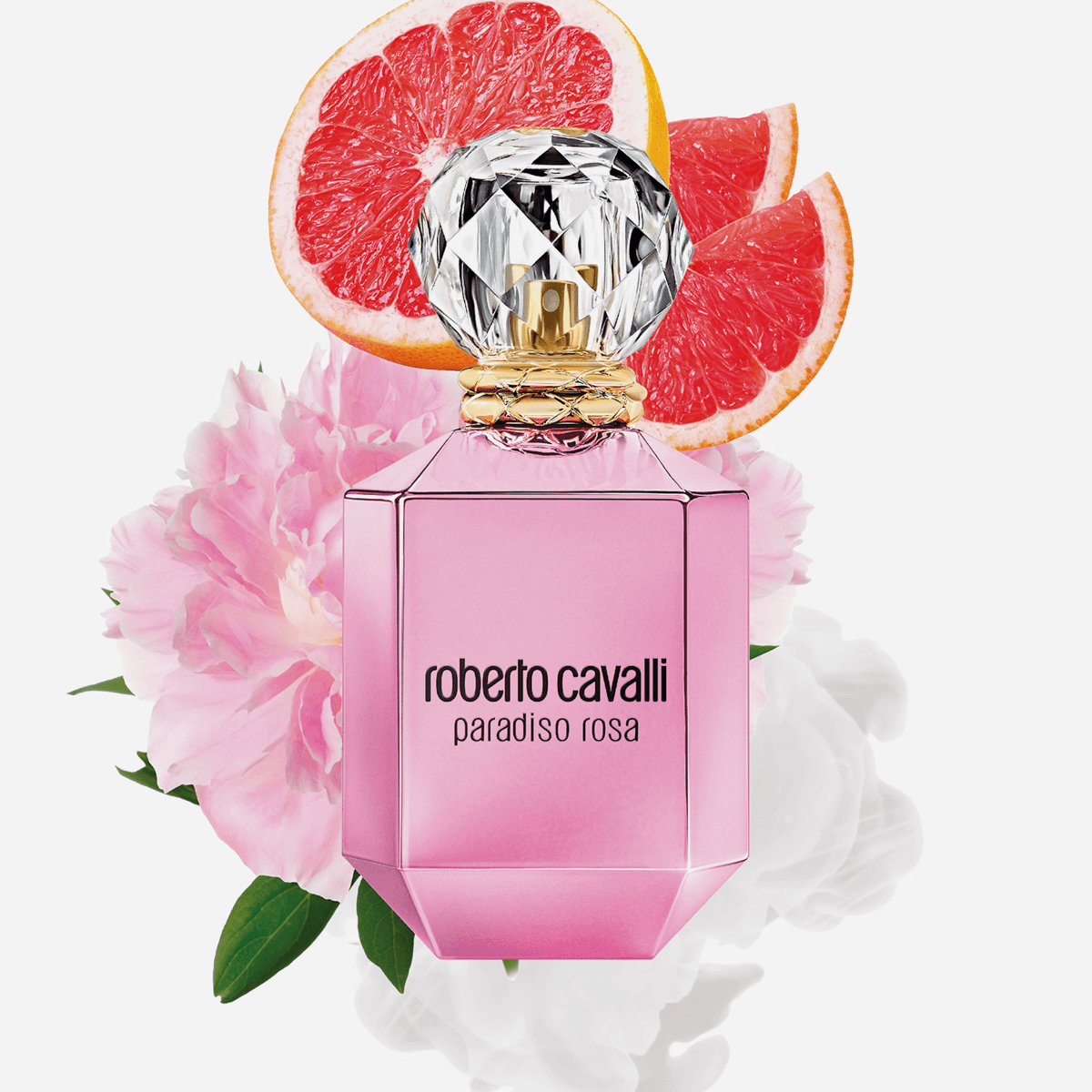 Roberto Cavalli Paradiso Rosa EDP smells like a bright, playful burst of pink grapefruit, raspberry and pink pepper that melts into soft peony and jasmine florals, finishing warm and creamy with coconut water, musk, benzoin and sandalwood.