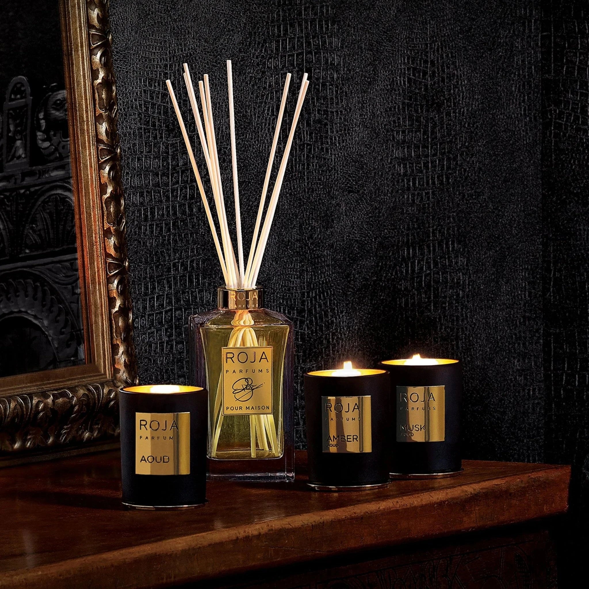 The Roja Parfums Musk Aoud Candle combines luxurious fragrance with exquisite craftsmanship, creating an inviting atmosphere in any space.