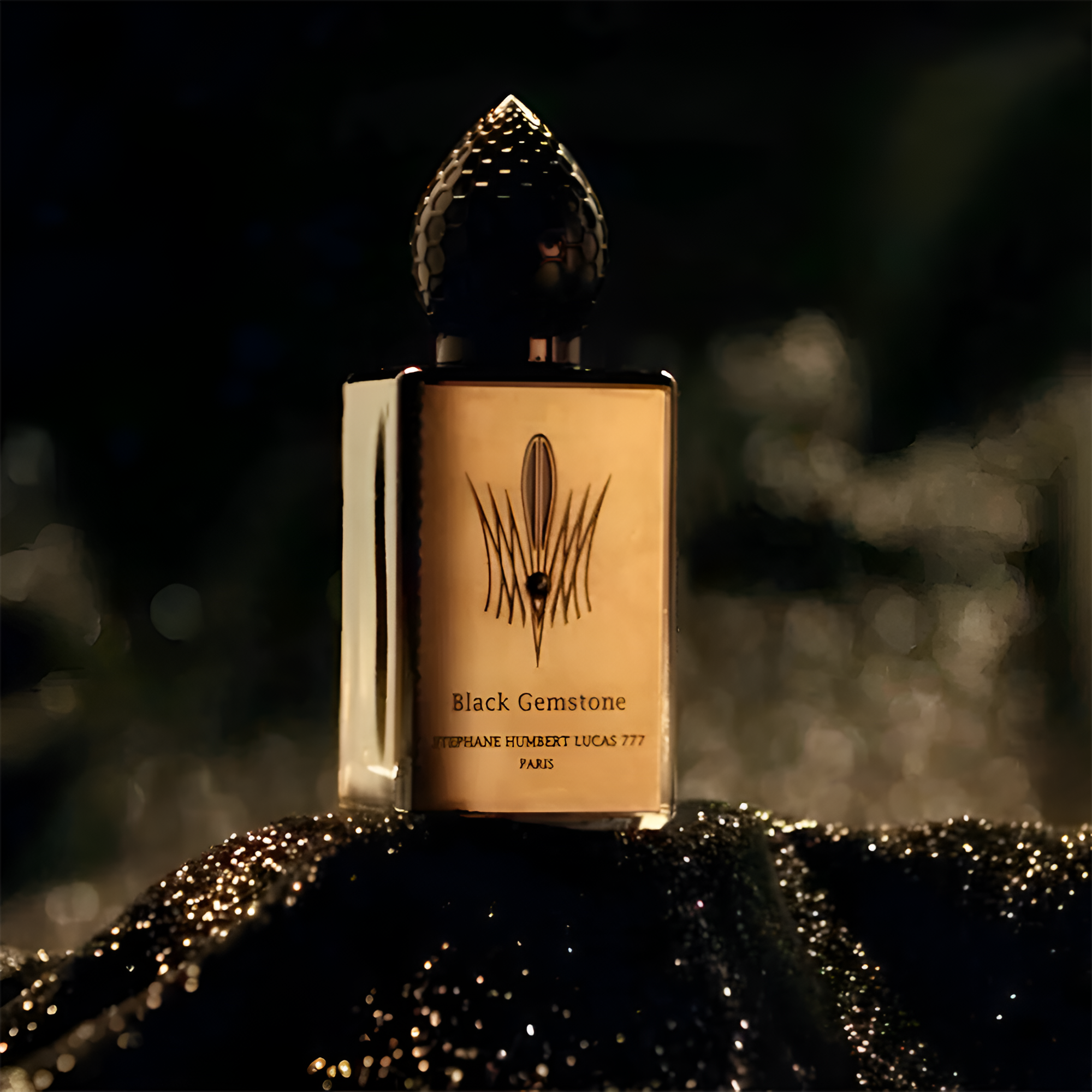 Stephane Humbert Lucas Black Gemstone EDP exudes a mystical scent, blending intense myrrh and deep patchouli with a smooth, vinyl-like aroma from tonka bean, invoking the profound mystery of the Hajr e Aswad.