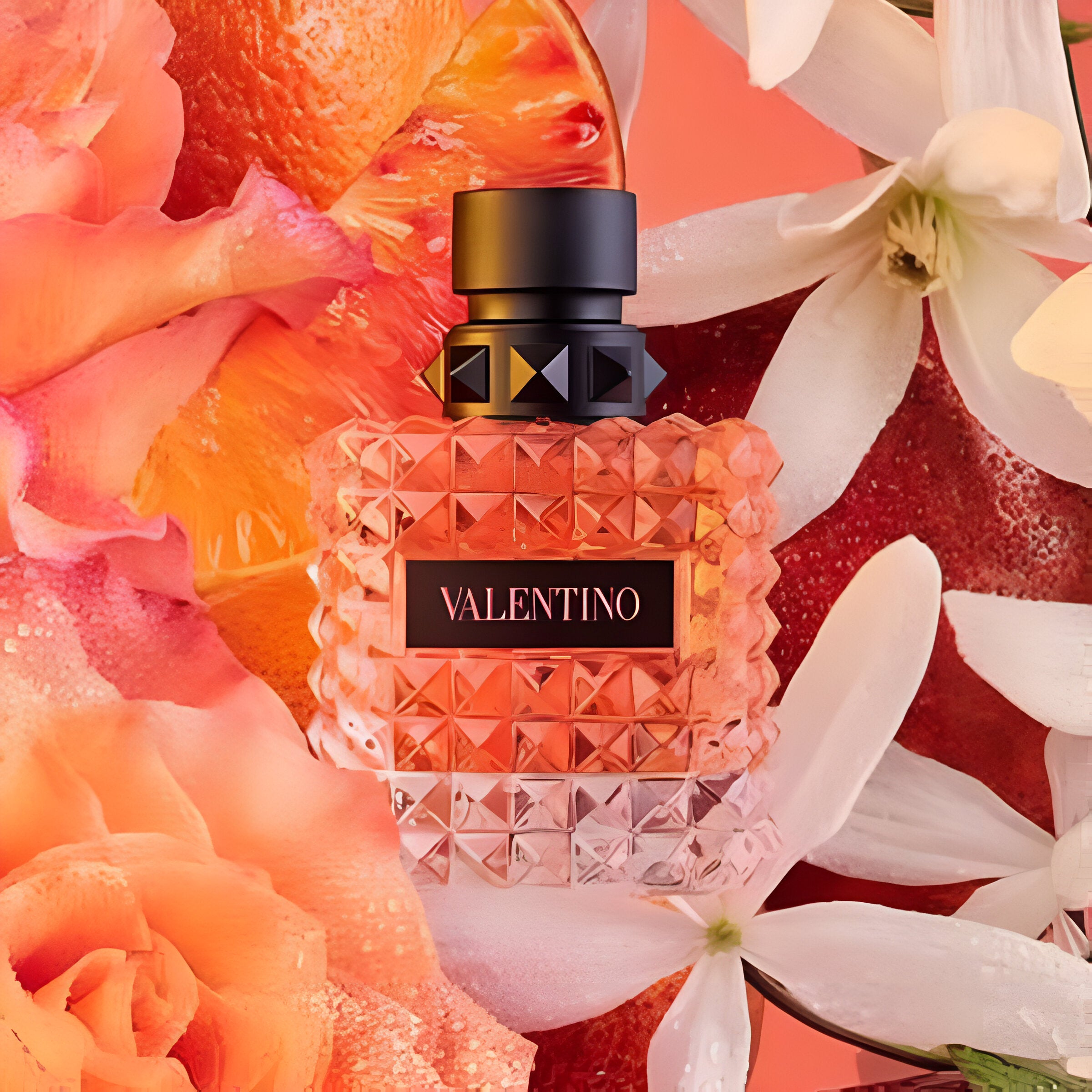 Valentino Donna Born In Roma Coral Fantasy EDP smells like a magical blend of sweet kiwi, fresh jasmine, and warm vanilla, capturing the enchanting feeling of a Roman sunset.